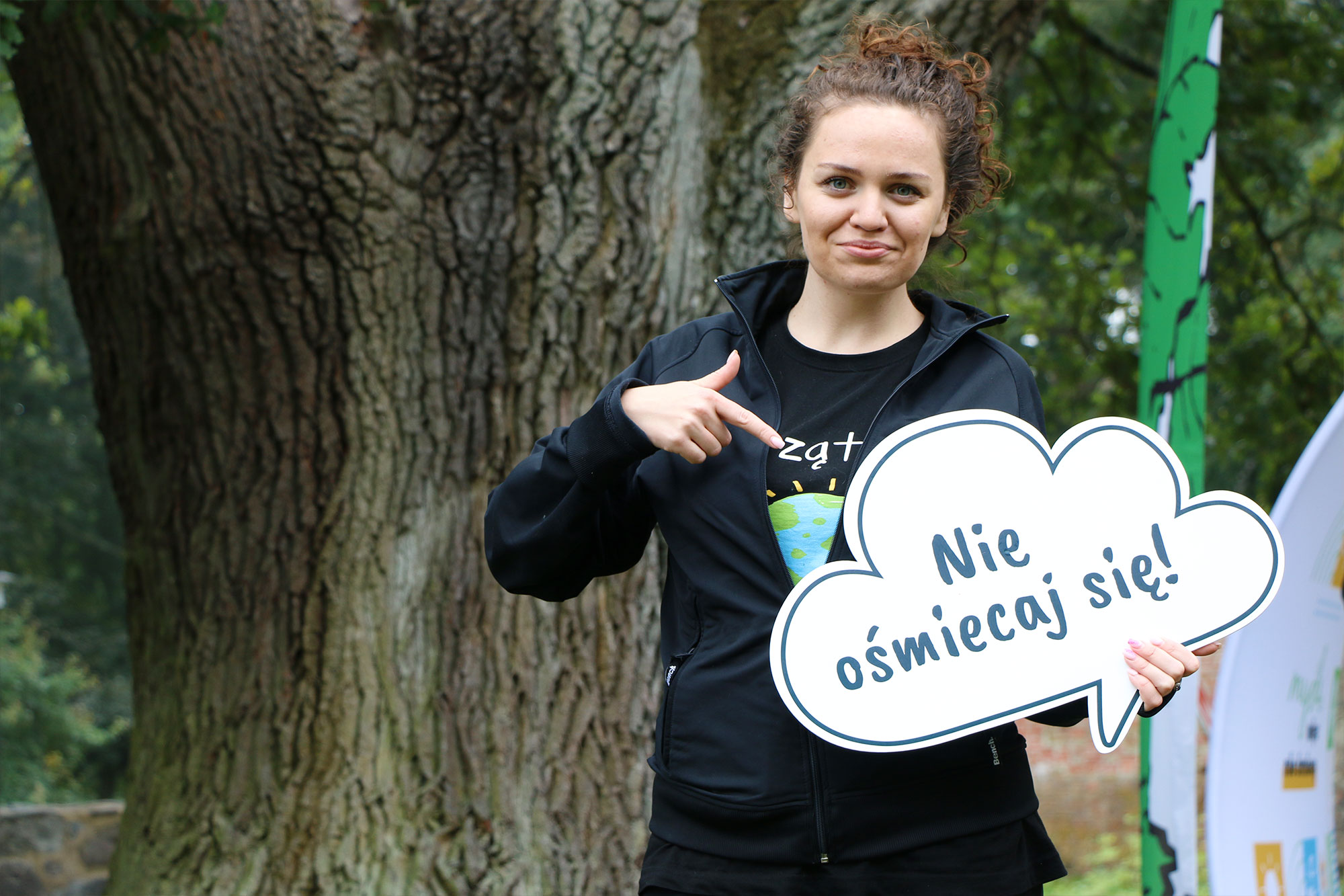 - „Nie ośmiecaj się”. Wolontariuszka Anastasiia Zagorovska prezentuje jedną z naszych fundacyjnych chmurek z ekologicznym przesłaniem