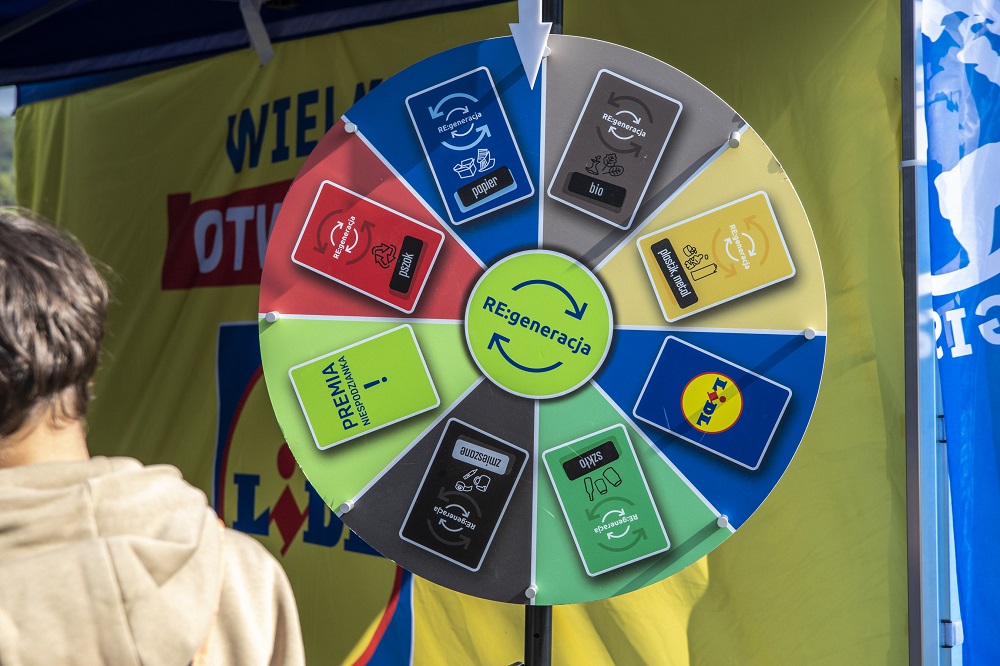 Stoisko edukacyjne wystawił również nasz Partner Lidl Polska. Pojawiło się na nim ekologiczne koło fortuny, pokaz surowców wtórnych do recyklingu, a także… żywa butelka! Kto jej nie widział, niech żałuje!